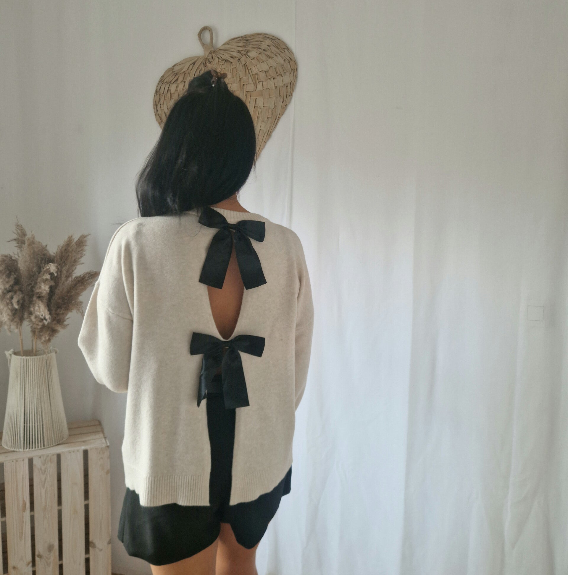 Zachte pull met strikken aan de achterkant (div.kleuren)