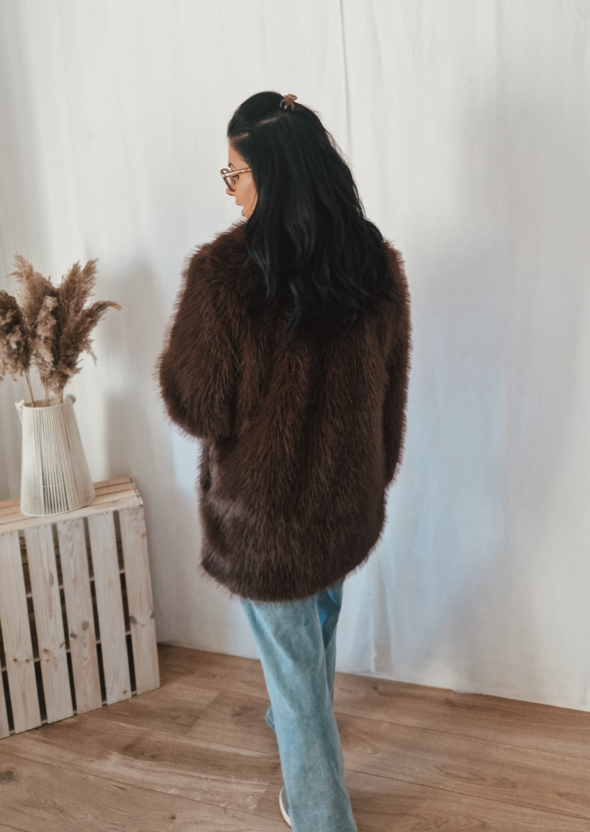 Deze faux fur mantel is heel zacht en warm. Ideale lengte, jas komt bij Saar onder de poep (Saar is 1m65).