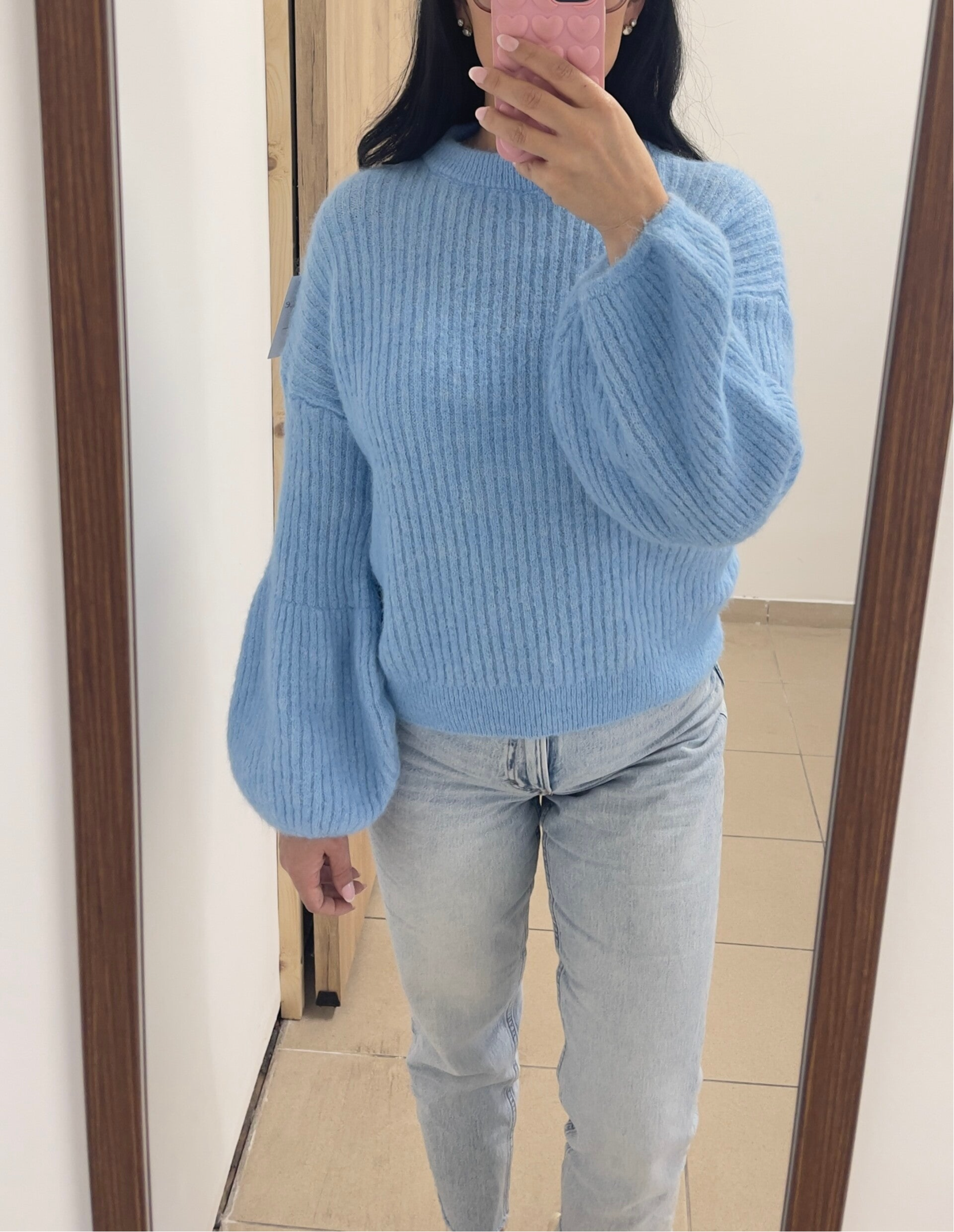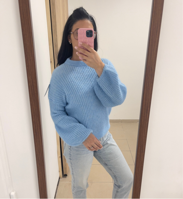 Heel leuk truitje in verschillende kleuren. Ideaal voor de lente. Afgewerkt met balloon mouwtjes. Prikken niet!
