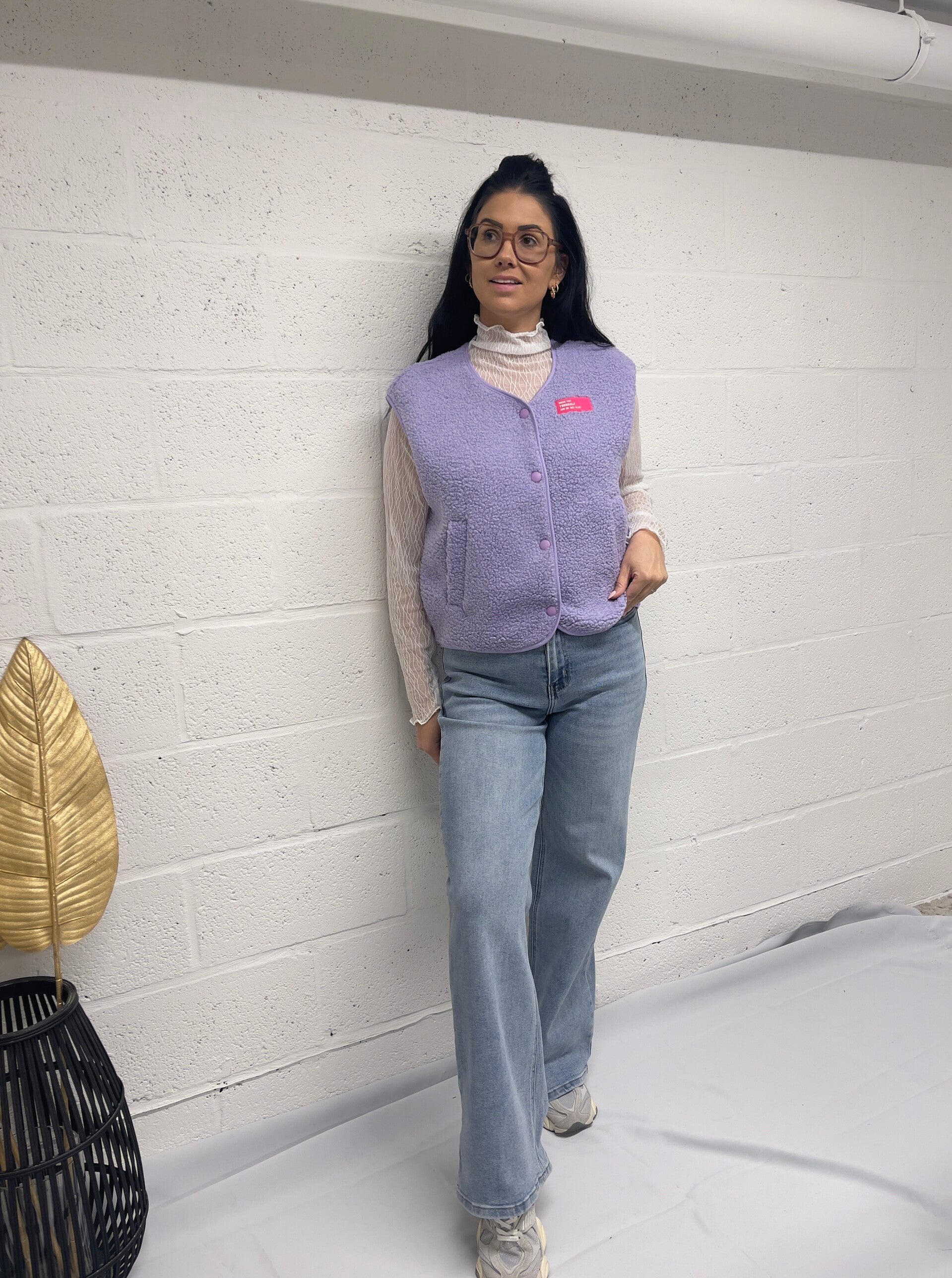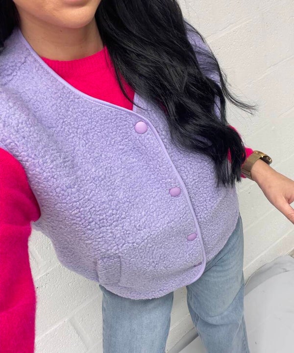 Zachte bodywarmer in teddy stof in leuke kleurtjes met knoopjes.